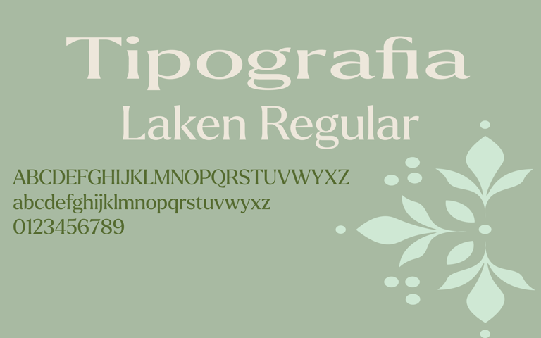A escolha tipografia foi pensada para seguir a estética estipulada a marca. Como tipografia de título a escolha foi a Yeseva One, que tem uma família vasta, pelo seu formato mais desenhado ela vai performar melhor em formatos maiores. Em contrapartida, a Laken, tipografia de apoio, que será usada para textos maiores, por ser uma fonte serifada o que permite ser mais confortável para leitura mais extensas.